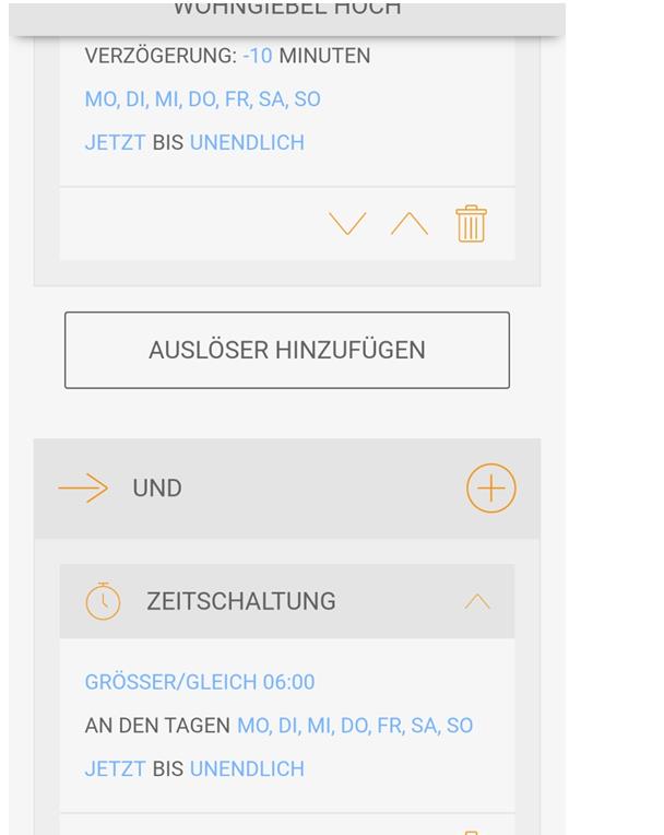 Wenn der Sonnenaufgang vor 6 stattfindet, dann löst der Task nicht aus, da du eingeschränkt hast, dass eine Aktion nur ausgeführt werden soll, wenn die snne aufgeht und es 6 Uhr oder später ist. du musst dann in einem weiteren Task definieren, wann der Rollladen spätestens hochgefahren werden muss. Schau mal in diesen Use-Case zu Rollläden, da findest du ganz unten genau deinen Fall erläutert: https://blog.mediola.com/silent-motio...