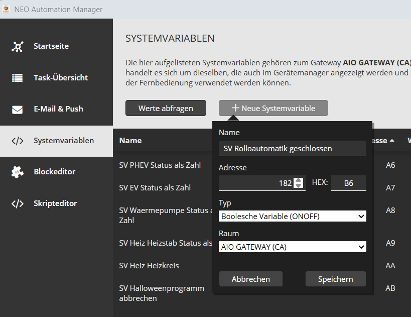 Als erstes legst du dir eine Variable "on off" an, der Name ist egal sollte aber möglichst selbstredend sein.